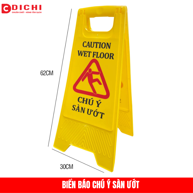 Bảng cảnh báo trơn trượt DICHI là thiết bị an toàn cần thiết trong mọi môi trường vệ sinh, tòa nhà, trung tâm thương mại, nhà hàng, khách sạn, văn phòng và khu công nghiệp. Sản phẩm giúp cảnh báo khu vực sàn ướt hoặc đang vệ sinh, ngăn ngừa tai nạn trượt ngã, đảm bảo an toàn cho nhân viên và khách hàng.