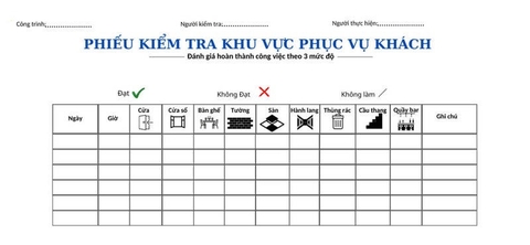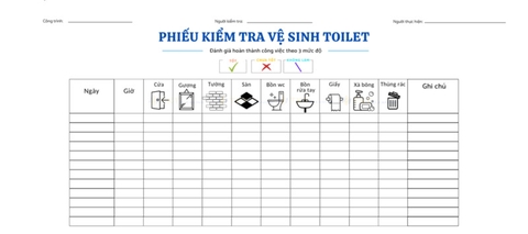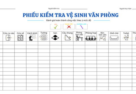 Biểu mẫu kiểm tra này sẽ cung cấp rõ ràng chi tiết các nhiệm vụ của từng nhân viên vệ sinh phải đảm nhận.