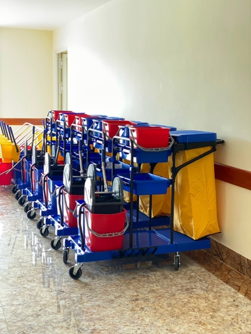 Xe làm vệ sinh HiClean HC 173 rất tiện lợi để làm vệ sinh gia đình, khách sạn, bệnh viện,... Có bộ phận ép nước và xô đựng nước dơ, nhằm tiết kiệm được thời gian và công sức.
